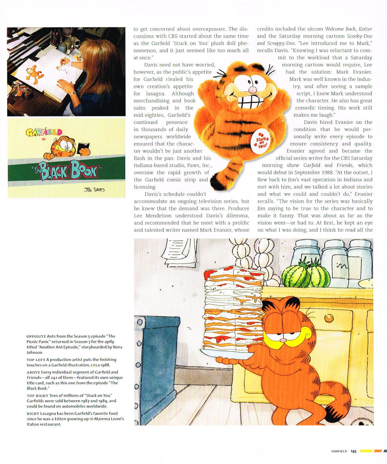Production Artist putting the final touches on a Garfield Illustration 1988. Garfield eating his favorite food Lasagna
