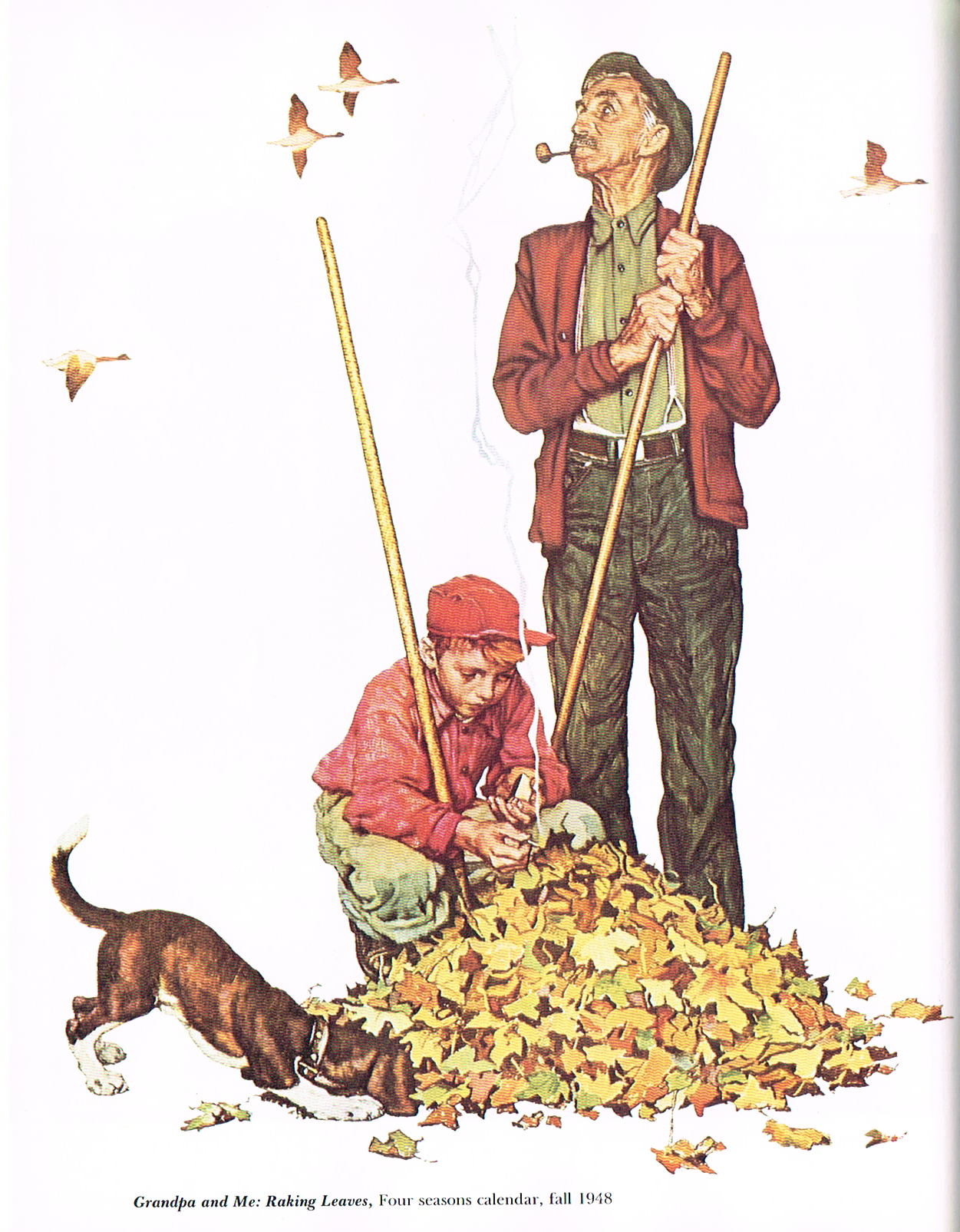 Grandpa and Me: Raking Leaves, Four Seasons Calendar Fall 1948